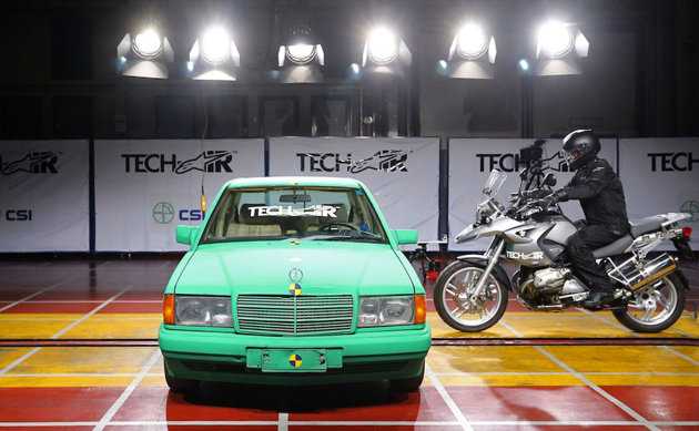 Trước một đám đông khán giả thận trọng và các nhà báo, một người mặc Tech-Air Street tông thẳng vào hông của một chiếc sedan với tốc độ 50km/h. Dữ liệu ghi nhận từ hệ thống cho thấy áo khoác Tech-Air phát hiện tác động và bung các túi khí trong khoảng chưa đến 1 giây (59 mili giây) trước khi va chạm xảy ra.