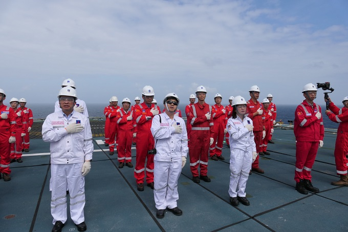 Chào cờ trên giàn Hải Thạch-Mộc Tinh.