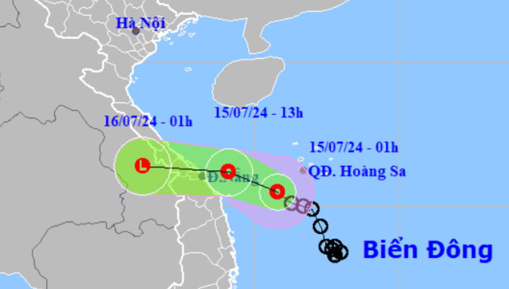 Lúc 1h ngày 15/7, vị trí tâm áp thấp nhiệt đới trên vùng biển phía Tây Nam của quần đảo Hoàng Sa. Sức gió mạnh nhất vùng gần tâm áp thấp nhiệt đới mạnh cấp 6 (39-49km/h), giật cấp 8, di chuyển theo hướng Tây Tây Bắc với tốc độ khoảng 10km/h.