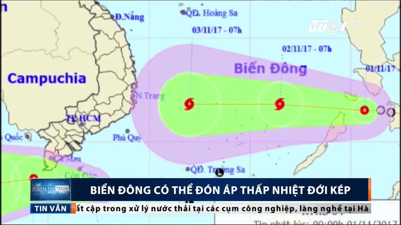 Việt Nam có thể phải đón nhận 2 áp thấp nhiệt đới liên tiếp, một áp thấp nhiệt đới gần bờ và một áp thấp nhiệt đới khác đã xuất hiện gần Biển Đông, có khả năng mạnh lên thành bão.