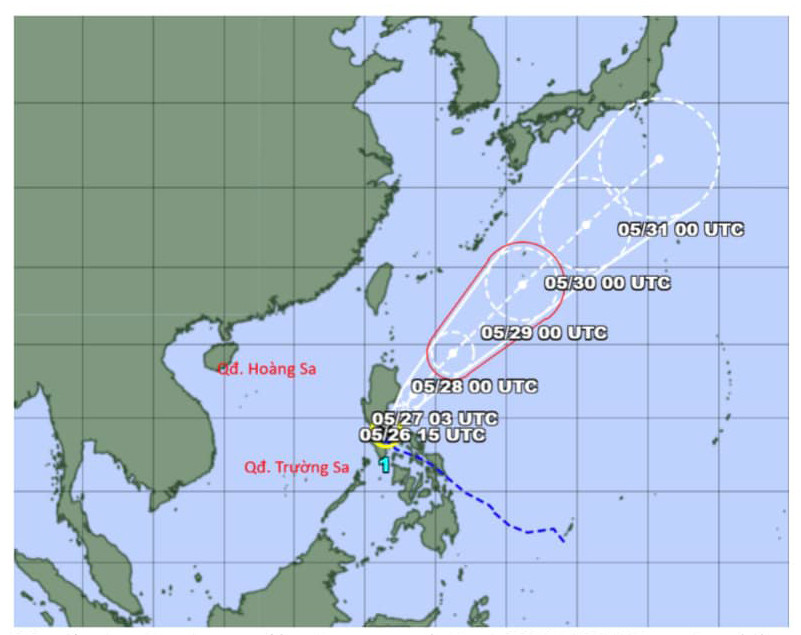 Theo dự báo của Trung tâm Dự báo khí tượng thuỷ văn quốc gia, Bắc vịnh Bắc Bộ, ngày và đêm 26/5, vùng biển phía Đông khu vực giữa Biển Đông, khu vực Nam Biển Đông (bao gồm vùng biển quần đảo Trường Sa) mưa rào và dông.