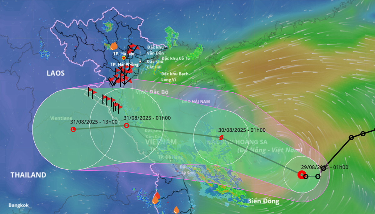 Lúc 1h ngày 29/8, vị trí tâm áp thấp nhiệt đới (ATNĐ) trên khu vực Bắc Biển Đông, cách đặc khu Hoàng Sa khoảng 320km về phía Đông Đông Nam. Sức gió mạnh nhất vùng gần tâm áp thấp nhiệt đới mạnh cấp 6-7 (39-61km/giờ), giật cấp 9, di chuyển theo hướng Tây với tốc độ 10km/h.