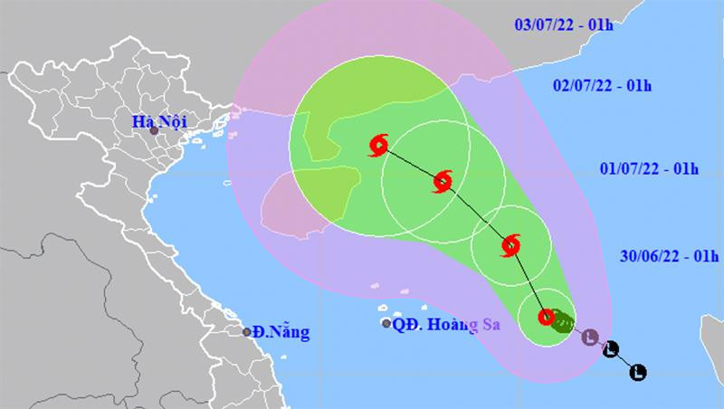 Đến 1h ngày 1/7, tâm bão cách quần đảo Hoàng Sa khoảng 410km về phía Đông Đông Bắc. Sức gió mạnh nhất vùng gần tâm bão mạnh cấp 8 (62-74km/giờ), giật cấp 10.