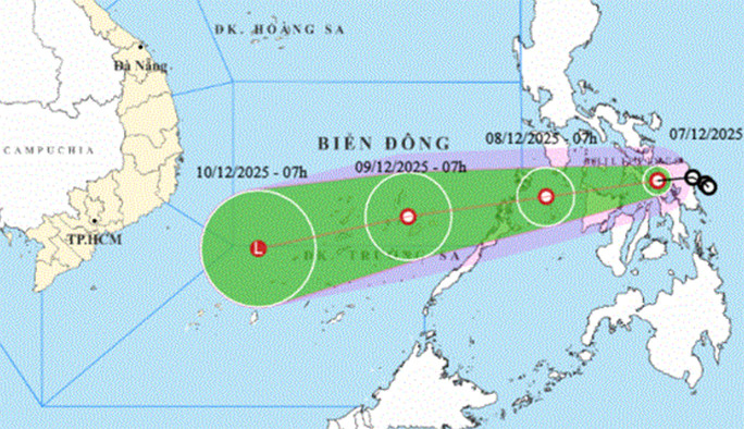 Dự báo đến 7h ngày 8/12, áp thấp nhiệt đới trên vùng biển phía Đông Bắc đảo Palawan (Philippines), đổi hướng Tây Tây Nam. Dù cường độ không thay đổi, sức gió mạnh nhất vùng gần tâm vẫn ở mức cấp 6, giật cấp 8, nhưng tốc độ di chuyển được dự báo tiếp tục tăng, có thể đạt 15-20 km/h.