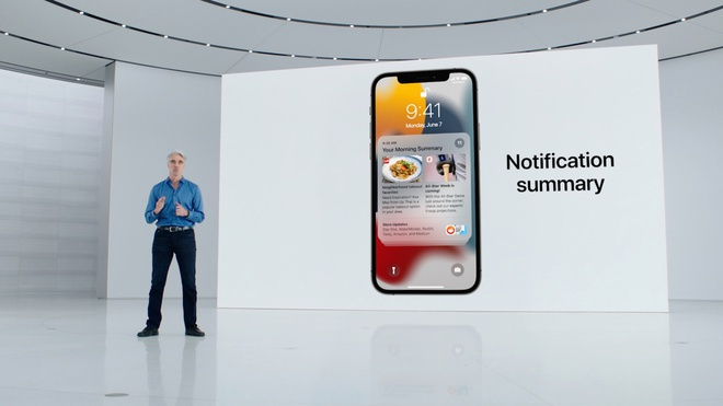 iOS 15 được xem là tâm điểm của sự kiện. Một trong những tính năng mới trên phiên bản này là Focus, điều chỉnh sự xuất hiện của thông báo dựa trên các hoạt động khác nhau (làm việc, học tập…). Người dùng có thể sắp xếp các trang màn hình dành cho từng chế độ, bên cạnh tính năng gửi tóm tắt các thông báo quan trọng theo khung giờ định sẵn.