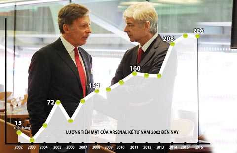 Theo báo cáo tài chính mà Pháo thủ vừa công bố, trong chiếc két sắt tại Emirates đang có tới 226,5 triệu bảng. Tất nhiên, đó chỉ là cách ví von, số tiền này tất nhiên nằm trong các tài khoản ngân hàng của CLB thủ đô London.