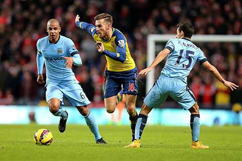 | Ramsey dũng mãnh đột phá trước vòng vây Man City |