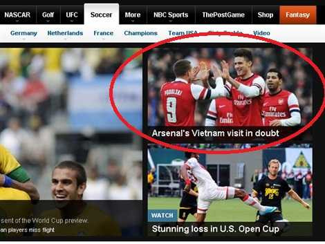 Còn trên tờ Dailymail, tác giả Matthew Morlidge cũng có bài viết với tựa đề “Trận giao hữu của Arsenal ở Việt Nam có nguy cơ bị hủy” thu hút khá nhiều bình luận của các độc giả. Ngoài những tranh cãi giữa ban tổ chức trận đấu và đại diện BQL sân Mỹ Đình, bài báo còn giới thiệu thêm về chi tiết chuyến du đấu lần này của thầy trò Arsene Wenger cũng như chuyến đi hồi đầu tháng Sáu của cựu cầu thủ Freddie Ljungberg.