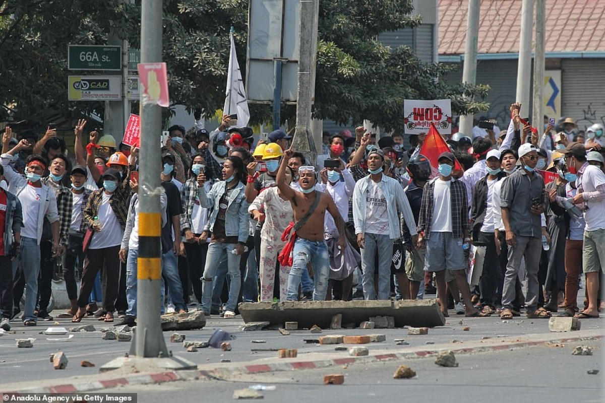 Trận chiến đổ máu giữa người biểu tình và chế độ quân sự Myanmar. (Ảnh Daily Mail)