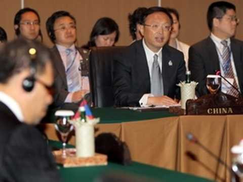 | Ngoại trưởng Trung Quốc Dương Khiết Trì (giữa) phát biểu tại Hội nghị Ngoại trưởng ASEAN - Trung Quốc diễn ra ở Bali (Indonesia) tháng 7/2011 |