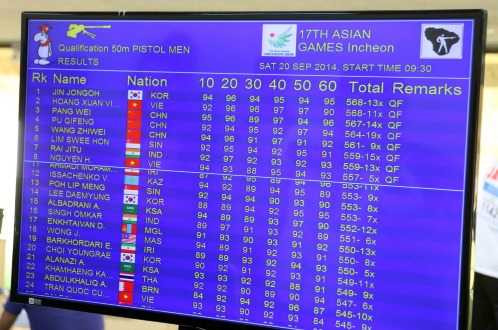 Cũng ở nội dung này, xạ thủ số 1 của bắn súng Việt Nam Hoàng Xuân Vinh chỉ xếp thứ tư với 145,9 điểm.