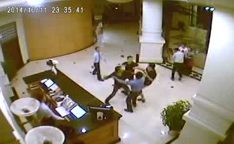 | Hình ảnh vụ ẩu đả được camera tại khách sạn ghi lại. Ảnh chụp từ video |