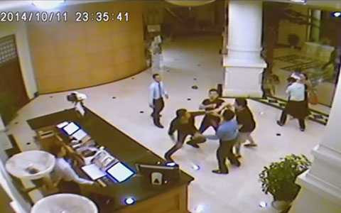 | Hình ảnh vụ ẩu đả được camera giám sát của khách sạn ghi lại |