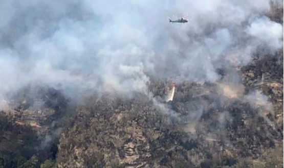 Lính cứu hỏa Australia thả hóa chất để ngăn các đám cháy tại các cánh rừng bên cạnh lan sang số thông Wollemi. (Ảnh" SMH)