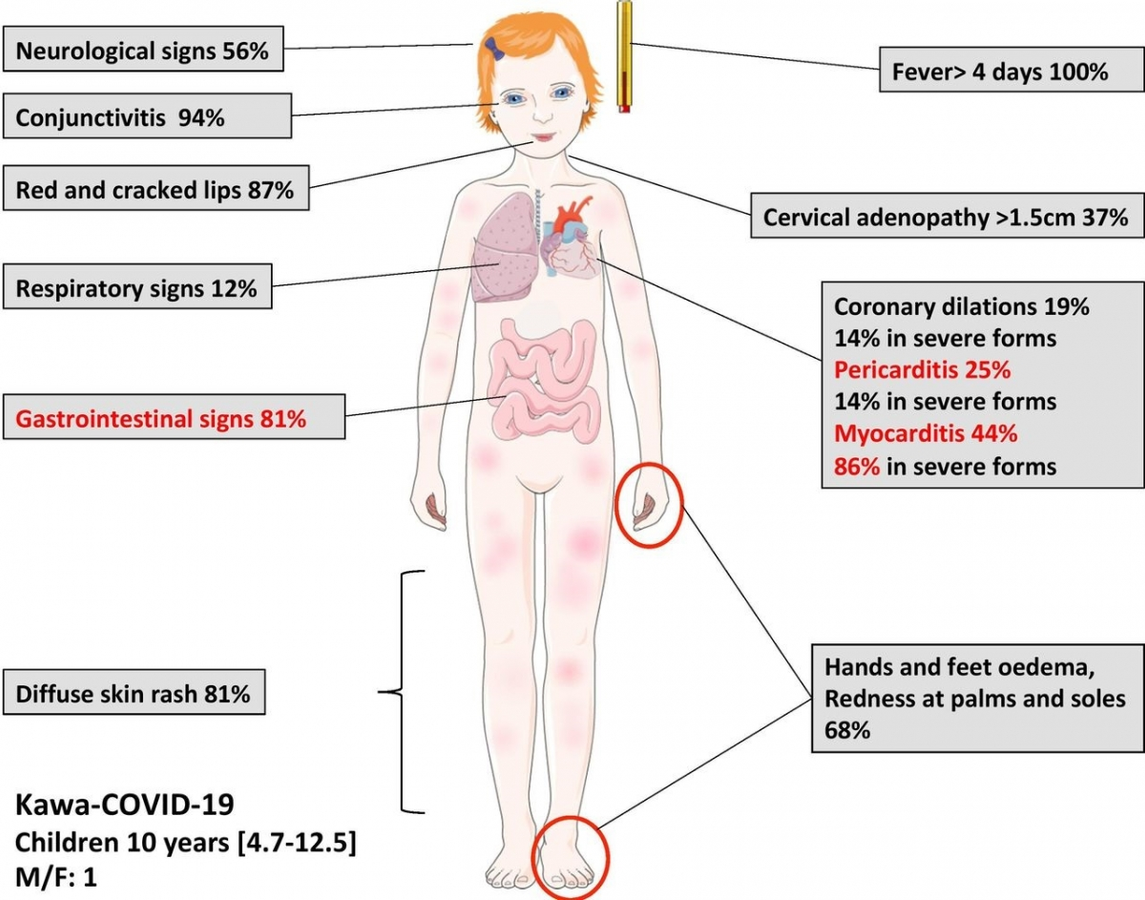 Theo một nghiên cứu gần đây được công bố trên tạp chí y học Lancet, có 78 trường hợp bệnh nhi mắc chứng bệnh này tại Anh trong tháng 4 và tháng 5 vừa qua. Độ tuổi trung bình của bệnh nhi là 11, trong đó đa số là trẻ em trai và các triệu chứng thường gặp bao gồm sốt, viêm, tổn thương cơ tim, sốc, đau bụng, nôn và tiêu chảy.