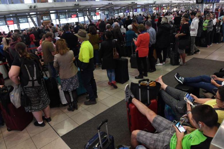 Hàng dài khách hàng đứng chờ ở một sân bay nội địa Australia. (Ảnh: EPA)