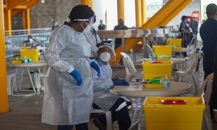 Nhân viên y tế tại một điểm tiêm chủng ở Papua New Guinea. (Ảnh: Guardian)