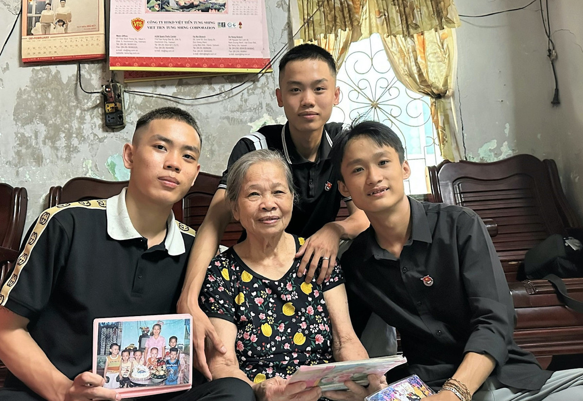 Ba anh em Hiền cùng bà ngoại trước ngày lên đường nhập ngũ.