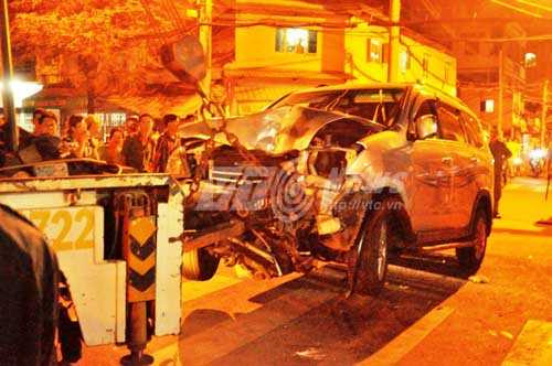 Chiếc xe chỉ dừng lại sau khi tông thêm một xe máy BKS 59H1-27619 dựng gần đó và tông vào hai trụ điện trên lề đường.