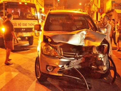 Do không làm chủ được tay lái, chị Thanh đã để xe ô tô tông cực mạnh vào xe máy BKS 33L2-3818 của chị Nguyễn Thị Quyên (SN 1976, đường Ngô Nhân Tịnh, phường 1, quận 6) đang chở con gái là Đỗ Trà My (6 tuổi) và cháu Đỗ Huy Kiến Thành (19 tháng tuổi) ngồi phía trước.