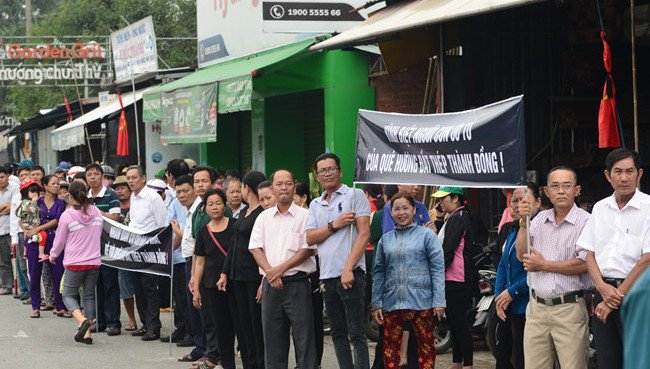 Người dân xã Tân Phú Trung, huyện Củ Chi, căng băng rôn, đứng bên đường tiễn nguyên Thủ tướng Phan Văn Khải.