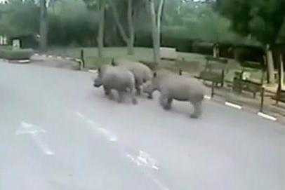 Ba con tê giác bỏ trốn khỏi vườn thú