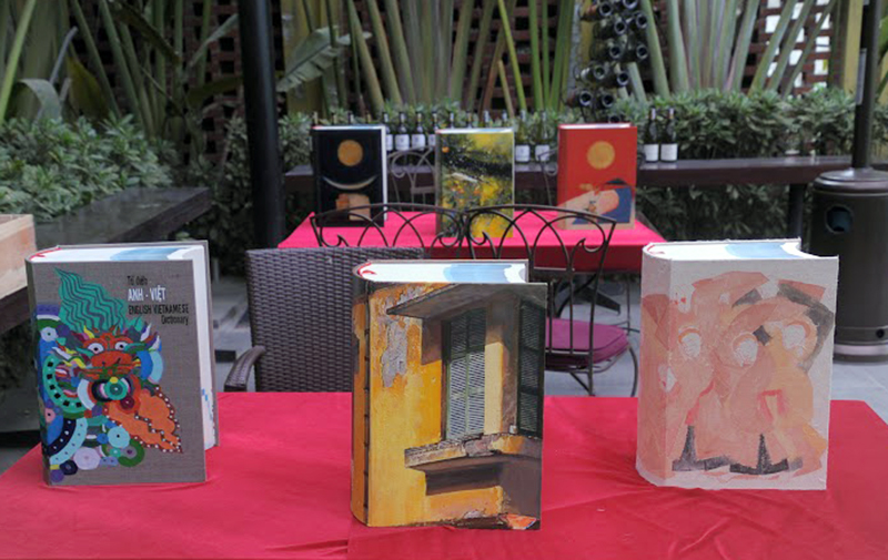 Tác phẩm của họa sĩ Thành Chương được mua với giá 99 triệu đồng và họa sĩ Phạm An Hải là 90 triệu đồng. Từ điển đặt trong hộp sơn mài được nghệ nhân Võ Văn Thân - làng nghề Hạ Thái chế tác.