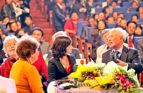 | Nguyên Phó Thủ tướng Vũ Khoan (ngoài cùng bên phải) và bà giáo Sofia Korchikova (ngoài cùng bên trái) trong buổi truyền hình trực tiếp "Thầy trò ngày gặp lại" ngày 17/1/2010 tại Hà Nội |