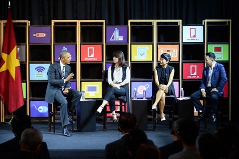 Chiều ngày 24/5, Tổng thống Barack Obama có mặt tại tầng 14 Dreamplex để giao lưu với gần 100 đại diện doanh nghiệp Việt về tinh thần khởi nghiệp. Ba nhân vật vinh dự tham gia đối thoại với tổng thống Mỹ là Lê Hoàng Uyên Vy (Giám đốc điều hành của Adayroi.com thuộc Tập đoàn Vingroup), Đỗ Thị Thúy Hằng (Phó giám đốc phụ trách Phát triển Kinh doanh và Quan hệ Đối ngoại tại Seedcom) và Khoa Phạm (Giám đốc Pháp lý & Quan hệ Đối ngoại cho lãnh đạo cấp cao của Microsoft Việt Nam).