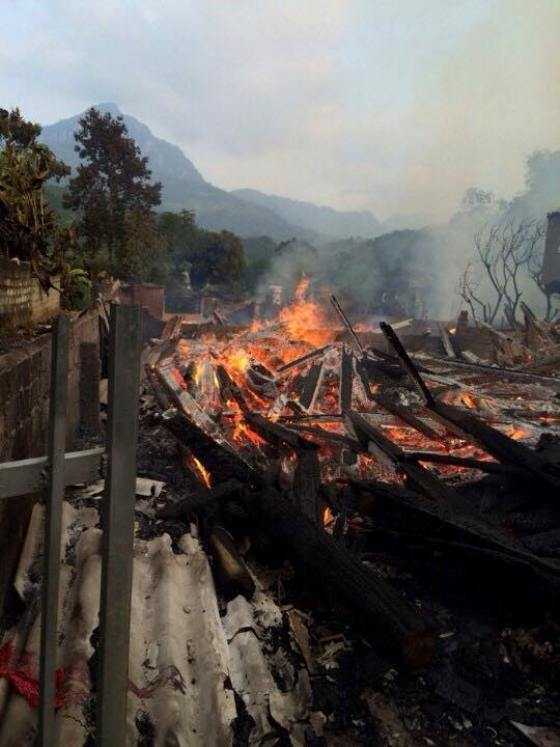 Do nhà làm bằng gỗ trong phút chốc lửa lan sang thiêu tụi hoàn toàn