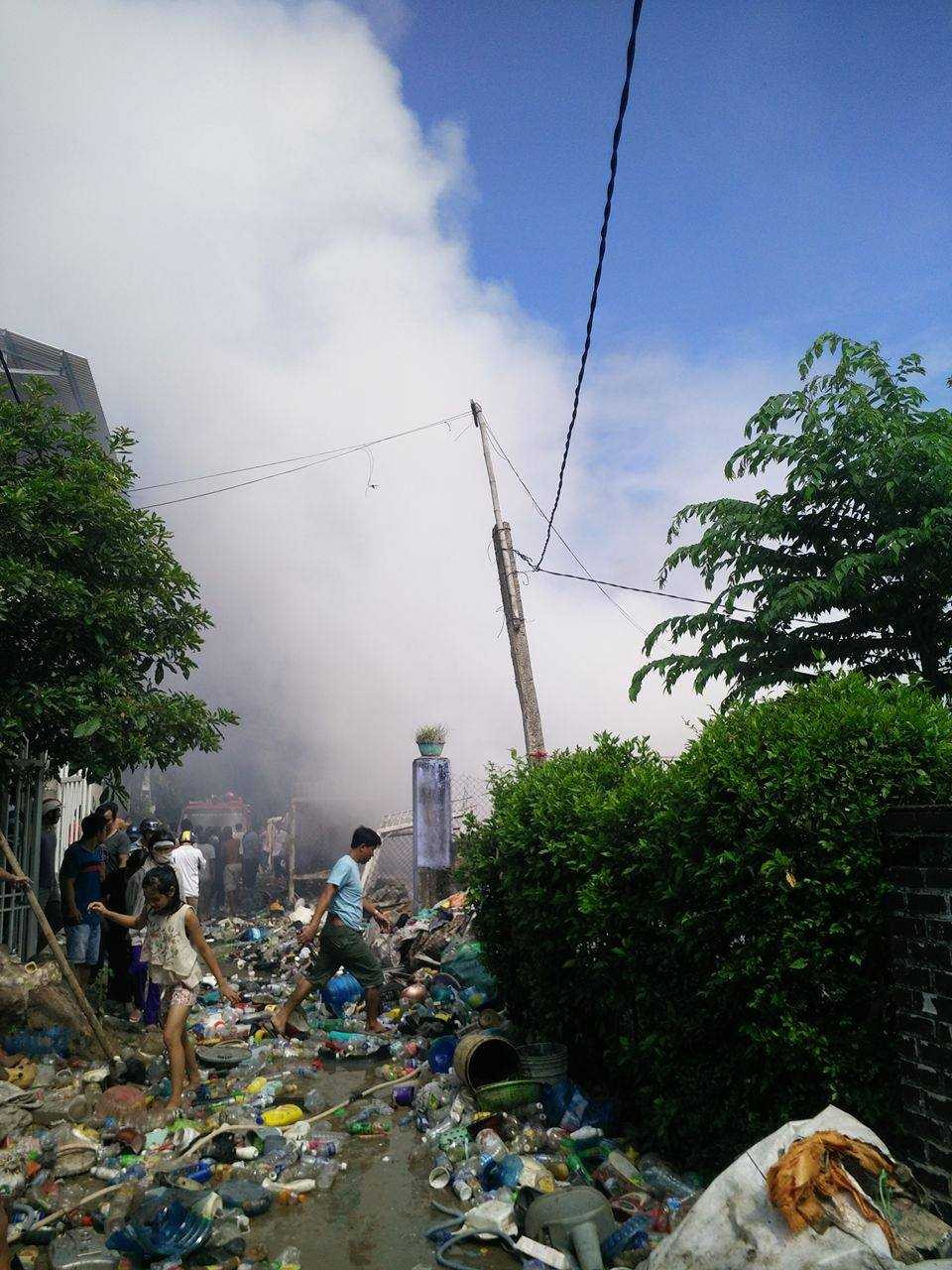 Thấy tiếng tri hô, người dân đã tiến hành dập lửa nhưng bất thành do trong kho phế liệu này có nhiều vật dụng dễ cháy như nhựa, giấy và vỏ xốp…