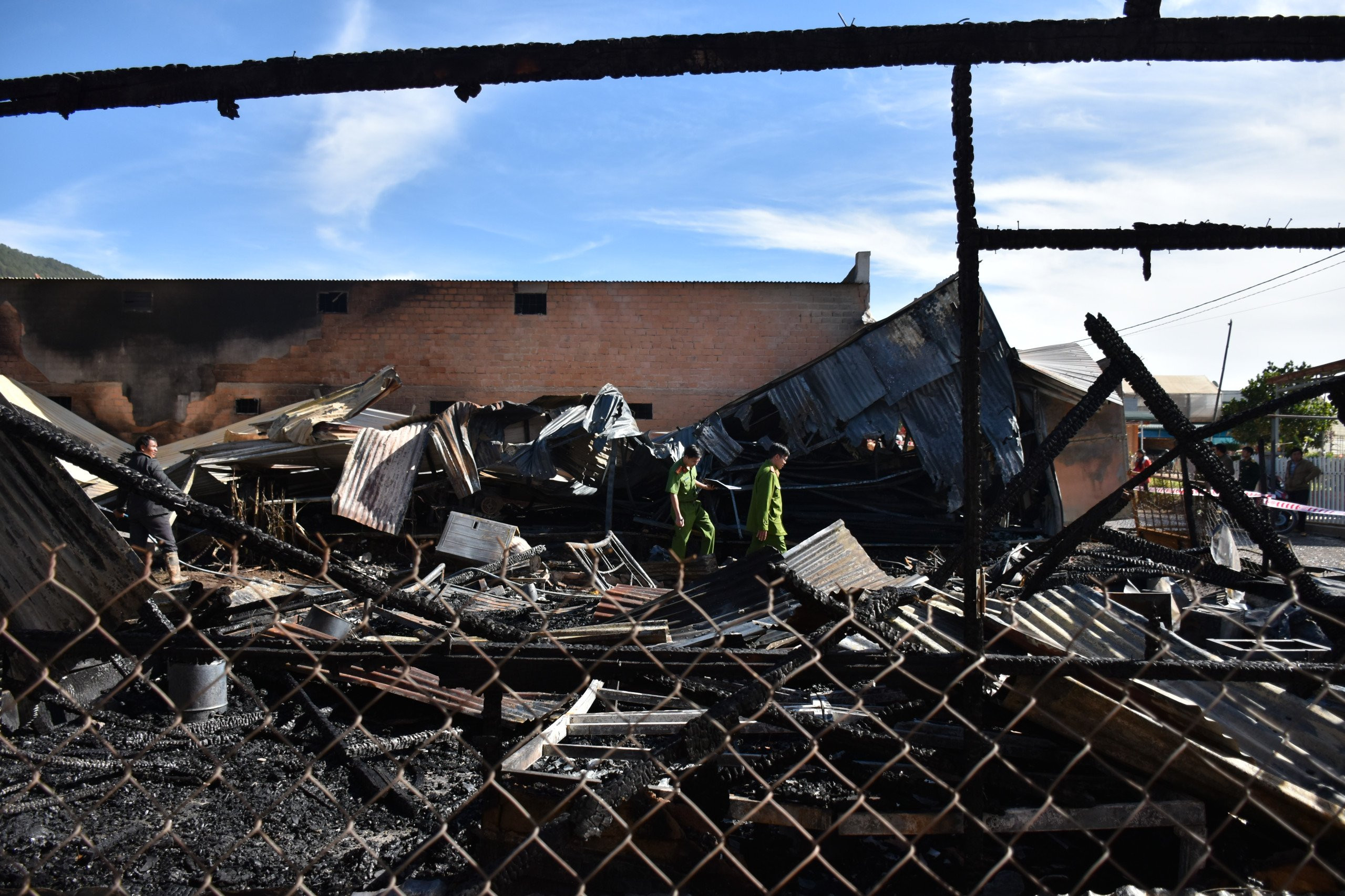 Lực lượng chức năng kiểm tra hiện trường vụ hỏa hoạn. (Ảnh: CTV)