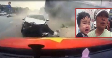 Đang đi thì bà nghe thấy tiếng "rầm" rất lớn và xe container lao qua chóng mặt. Bà vội ôm cháu chạy thật nhanh và thoát chết trong gang tấc. Ô tô con chở 2 bà cháu bị đâm vỡ nát.
