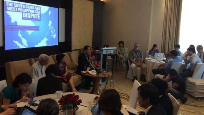 Thẩm phán Antonio Carpio gặp gỡ báo chí tại Manila.