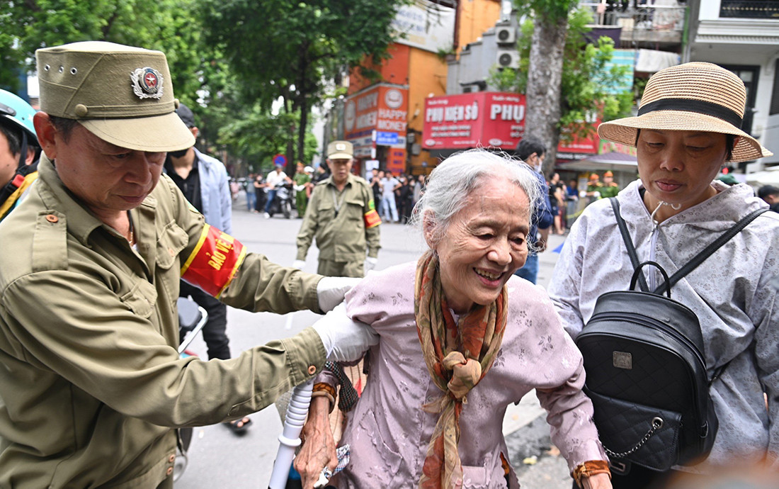 Trưa 25/7, bà Tạ Thị Lê (77 tuổi, ở huyện Kim Bảng, Hà Nam) ngồi cùng 2 phụ nữ mới quen trên hè phố Lò Đúc (quận Hai Bà Trưng, Hà Nội) chờ đến giờ được vào Nhà tang lễ Quốc gia viếng Tổng Bí thư Nguyễn Phú Trọng.