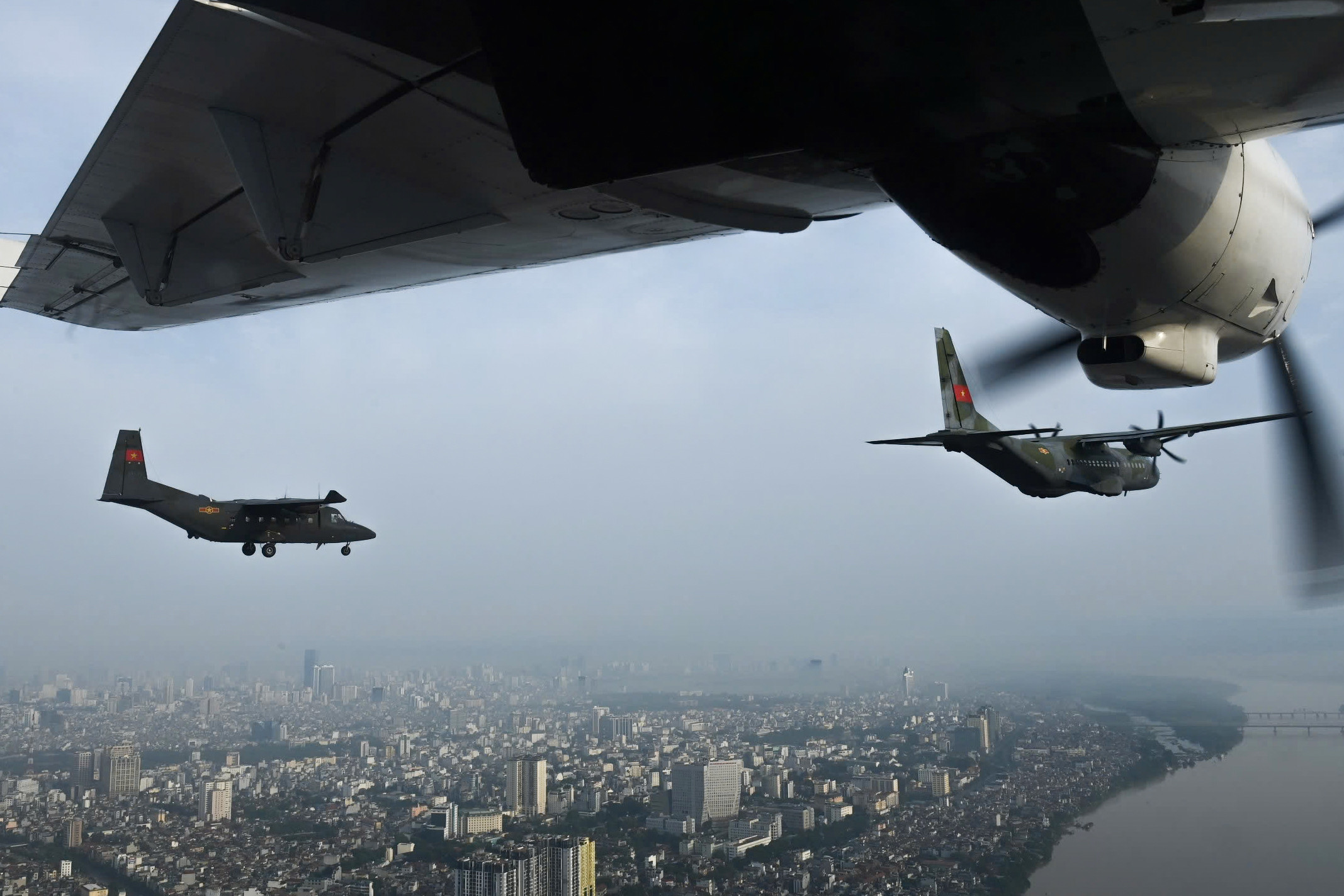Đây là lần đầu tiên sau 40 năm, đội hình 3 chiếc Casa C295, C212i, C212-400 ghép đội hình trên bầu trời Hà Nội.