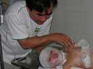Tại khoa cấp cứu Bệnh viện Đa khoa Sóc Trăng, y bác sĩ vệ sinh, băng bó vết bỏng trên người chị Hân và hai con trước khi làm thủ tục chuyển cả ba mẹ con lên tuyến trên.