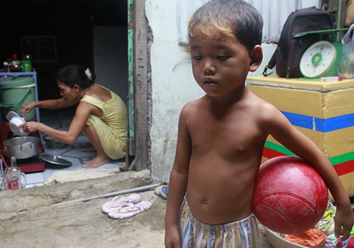 Bà mẹ này đã sinh 8 con ở chính ngôi nhà ọp ẹp giữa Sài thành, đứa cuối cùng mới ra viện đẻ. (Infonet)