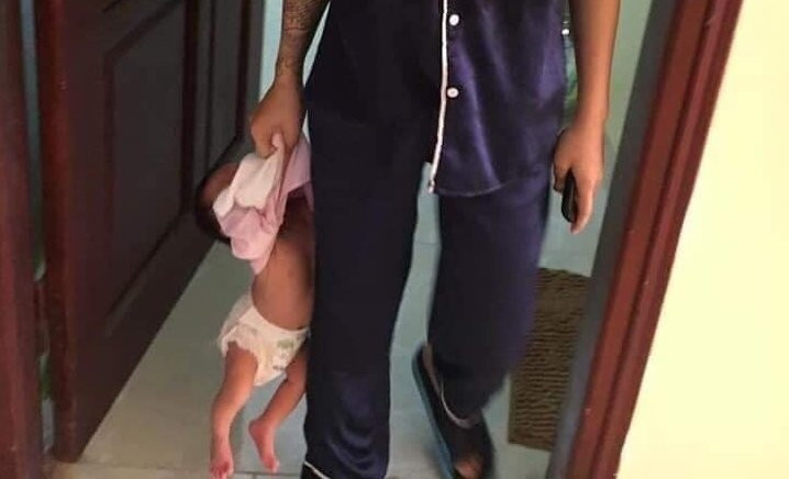Bà mẹ xăm trổ xách con mấy tháng tuổi bằng một tay khiến cộng đồng mạng bức xúc