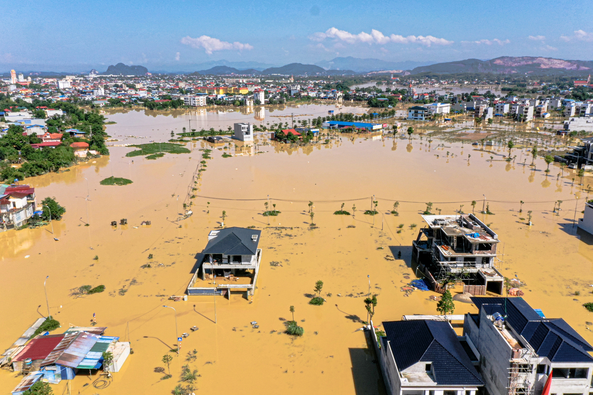 Khu vực phường Gia Sàng, tỉnh Thái Nguyên vẫn còn ngập nước trưa 9/10.