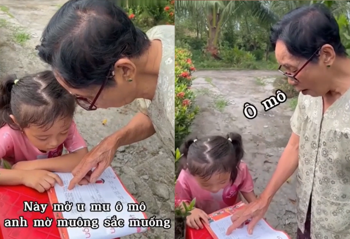 Cháu gái hoang mang khi nghe bà đánh vần (Nguồn: Huydat.phan)
