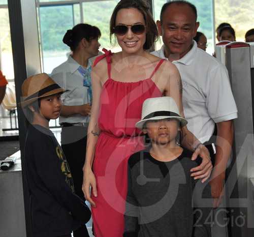 Jolie và Pax Thiên trong chuyến thăm Việt Nam giữa tháng 11. Ảnh: 24H.