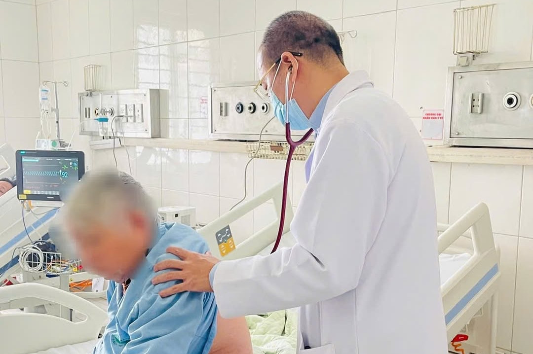 Bác sĩ Cường khám bệnh cho người già mắc cúm A. (Ảnh: BVCC)