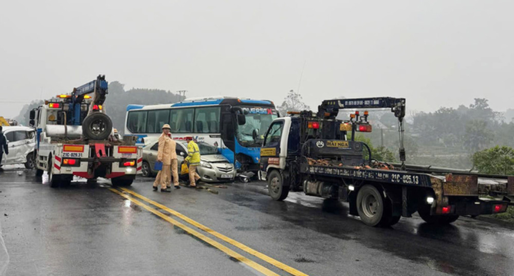 Vụ tai nạn giữa 3 ô tô xảy ra lúc 6h30 ngày 31/1 (mùng 3 Tết), tại Km140+750 cao tốc Nội Bài - Lào Cai thuộc địa phận xã Xuân Ái, huyện Văn Yên, tỉnh Yên Bái.