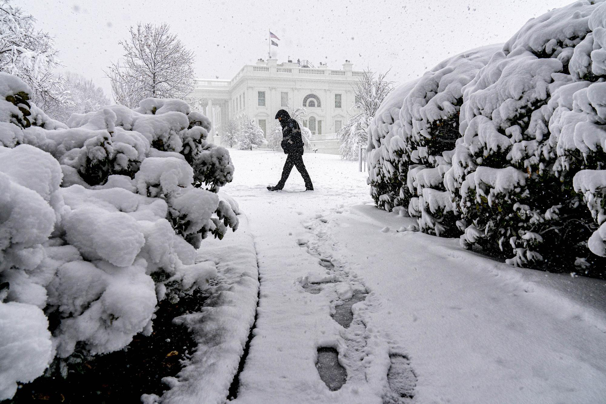Thủ đô Washington và vùng lân cận ở miền đông nước Mỹ phủ màu trắng xóa khi bão tuyến tấn công, gây gián đoạn nhiều hoạt động giao thông, cuộc dống người dân đảo lộn. (Ảnh: AP)