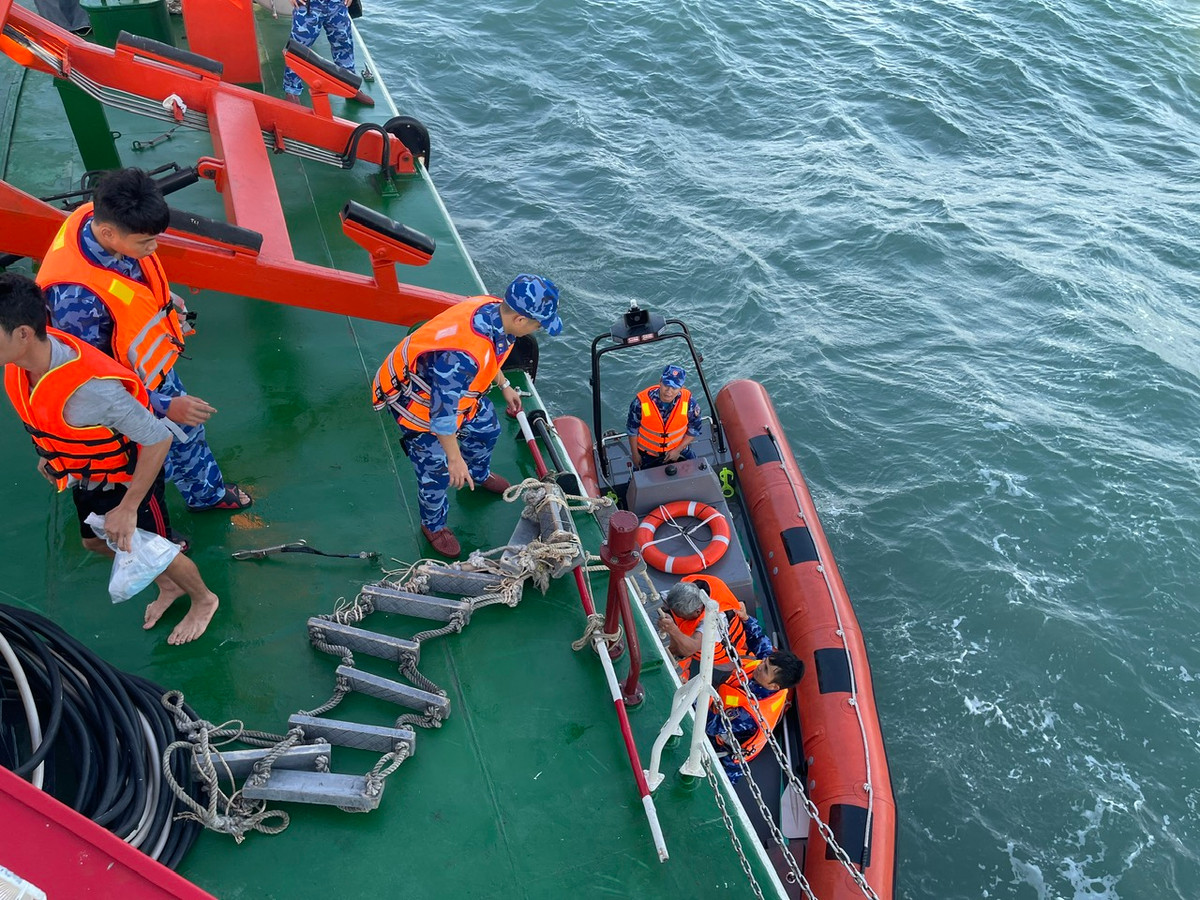 14 ngư dân bị chìm tàu trên biển được tàu Bazan quốc tịch Đức vớt và được lực lượng Cảnh sát biển tiếp nhận đưa về bờ an toàn