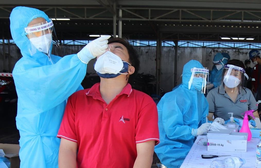Nhân viên y tế tỉnh Bà Rịa - Vũng Tàu lấy mẫu xét nghiệm COVID-19 cho người lao động khu công nghiệp Đông Xuyên (TP Vũng Tàu).