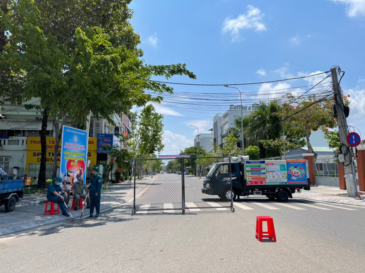 Lực lượng chức năng đang phong toả một đoạn đường Nguyễn Hữu Thọ (TP Bà Rịa) khi phát hiện ca mắc COVID-19.