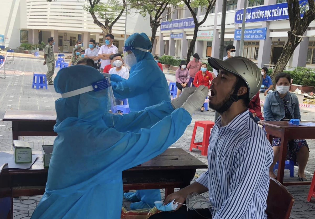 Nhân viên y tế tỉnh Bà Rịa - Vũng Tàu lấy mẫu xét nghiệm COVID-19 cho người dân ở thị xã Phú Mỹ.