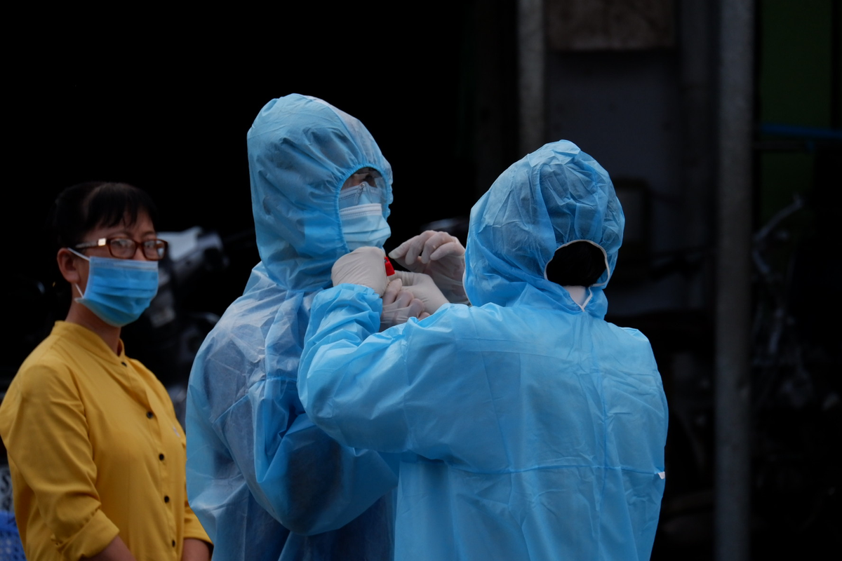 Lúc 9h ngày 18/6, Trung tâm Y tế huyện lấy mẫu test nhanh COVID-19 cho các tài xế giao nhận hàng của Công ty Lâm Minh Trí tại tổ Y tế thị trấn Hậu Nghĩa. Đến 10h50, khoa Xét nghiệm Trung tâm Y tế huyện ghi nhận 3 mẫu test nhanh dương tính SARS-CoV-2, gồm T. (SN 1970), D. (SN 2000), V. (SN 1970).